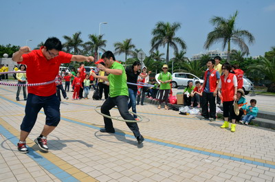 陽光明媚、海浪輕拍,大雨洗滌過的海濱分外清新。員工和官兵代表們絡(luò)繹不絕、配合默契撿拾木棧道沿途垃圾,志愿者紅色馬甲與海軍藍(lán)色制服錯落分布,構(gòu)成海灘一道獨(dú)特亮麗的風(fēng)景線。員工子女們也顧不得滿頭大汗,興沖沖地?fù)炱鸨缓K疀_上岸的雜物,用心體會著環(huán)保的理念和勞動的快樂。音樂廣場上的拔河比賽和趣味游戲?qū)F(xiàn)場氣氛推向高潮。來自集團(tuán)和海軍南方局的16支代表隊(duì)奮力拼搏,拉拉隊(duì)員激情吶喊,充分展現(xiàn)了廣大員工和現(xiàn)代軍人團(tuán)結(jié)拼搏的精神風(fēng)貌。經(jīng)過激烈角逐,象嶼碼頭、海軍南方局代表隊(duì)拔得頭籌,分獲甲、乙組冠軍。由貿(mào)易、建設(shè)、速傳、資產(chǎn)四家工會精心準(zhǔn)備的趣味游戲吸引了眾多員工及家屬參與,“龍鳳戲珠”、“呼啦行進(jìn)”、“勇闖長繩”、“向快樂出發(fā)”等環(huán)節(jié)異彩紛呈,歡呼聲、叫好聲,高潮迭起。