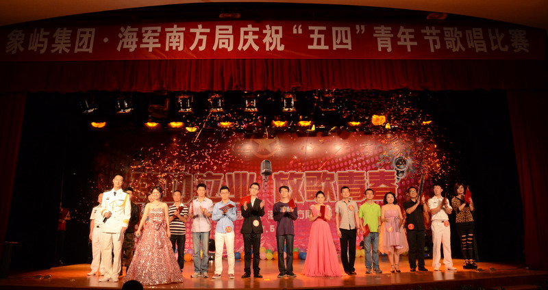 五月的花海,飛揚的青春!為慶祝中國共產(chǎn)主義青年團成立90周年,象嶼集團團委和海軍南方局團委共同舉辦 “建功立業(yè),放歌青春”慶祝“五四”青年節(jié)歌唱比賽,來自兩個單位的16名決賽選手登臺獻藝,在廈公司領(lǐng)導、員工,以及共建單位海軍南方局官兵近三百五十人到場吶喊助威。