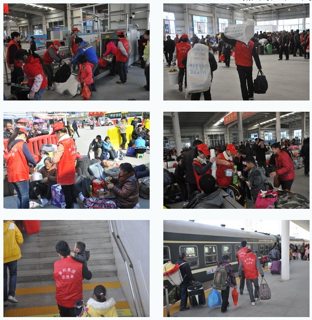 今年已是集團(tuán)第三年組織參加春運(yùn)服務(wù)。雖然是周末休息日,但我們的志愿者一早就到達(dá)服務(wù)區(qū)域:有的協(xié)助搭建志愿者暖洋洋服務(wù)站并駐點(diǎn)服務(wù),有的負(fù)責(zé)整個(gè)廣場(chǎng)及候車廳外圍的引導(dǎo)和搬運(yùn),有的負(fù)責(zé)協(xié)助候車廳安檢及廳內(nèi)服務(wù),還有的幫助那些攜幼提重的旅客順利登車。